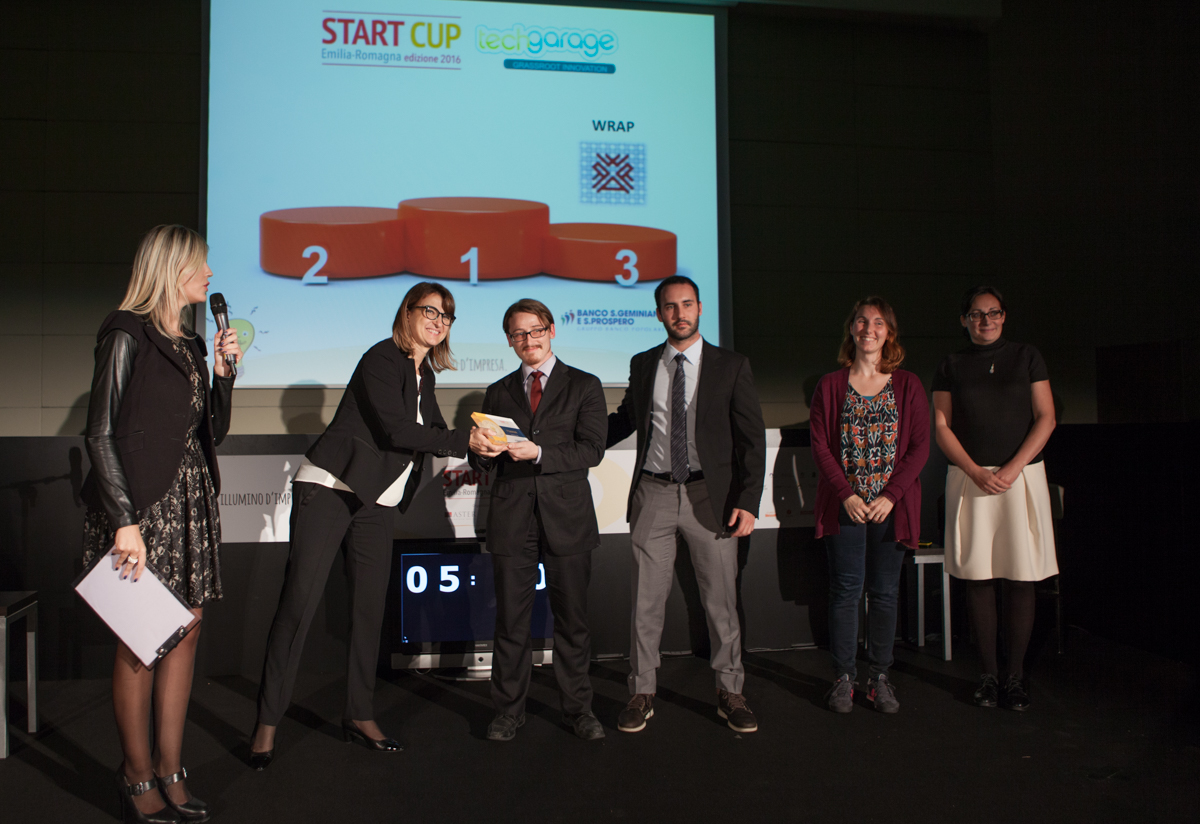 Wrap è una startup di Parma che produce dispositivi medici (cerotti e bendaggi) tramite stampanti 3D e biomateriali naturali riassorbibili. I dispositivi sono destinati alla cura di lesioni della pelle (ferite croniche, piaghe da diabete, lesioni, ustioni, ecc.) e hanno una composizione a base di chitosano, acido ialuronico, collagene, fibroina, vitamina E e principi attivi. La startup è stata fondata dai professori Lisa Leveri (amministratore delegato), Ruggero Bettini e Marco Silvestri. Allo sviluppo dell’azienda contribuiscono anche Ruben Foresti, Annalisa Bianchera e Carlo Bergonzi